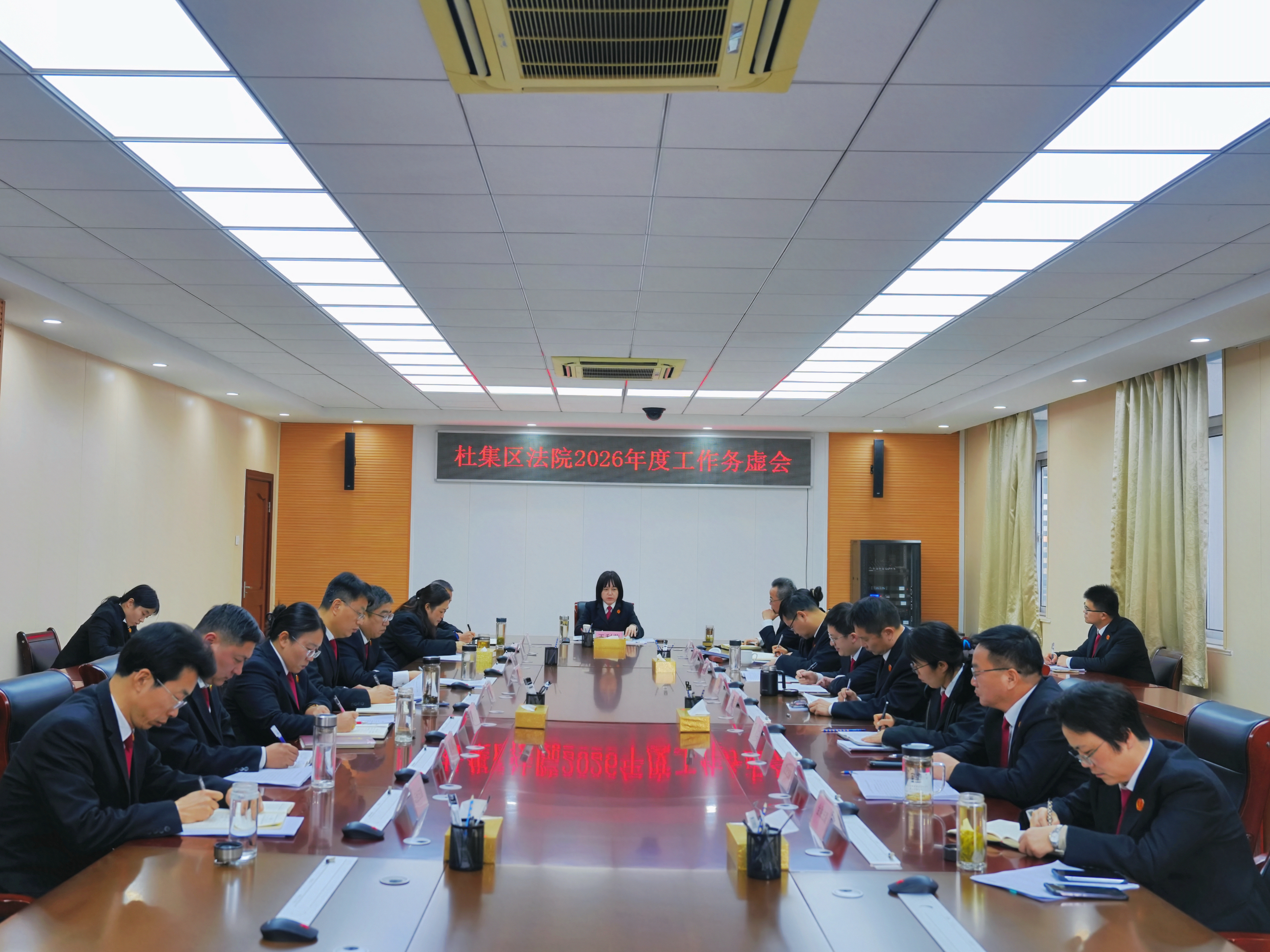 近日,淮北市杜集区人民法院召开2026年度工作务虚会,全面回顾总结2025年工作,科学谋划部署2026年工作思路与重点任务。院党组书记、院长王利萍主持会议并讲话,院班子成员、各部门负责人参...