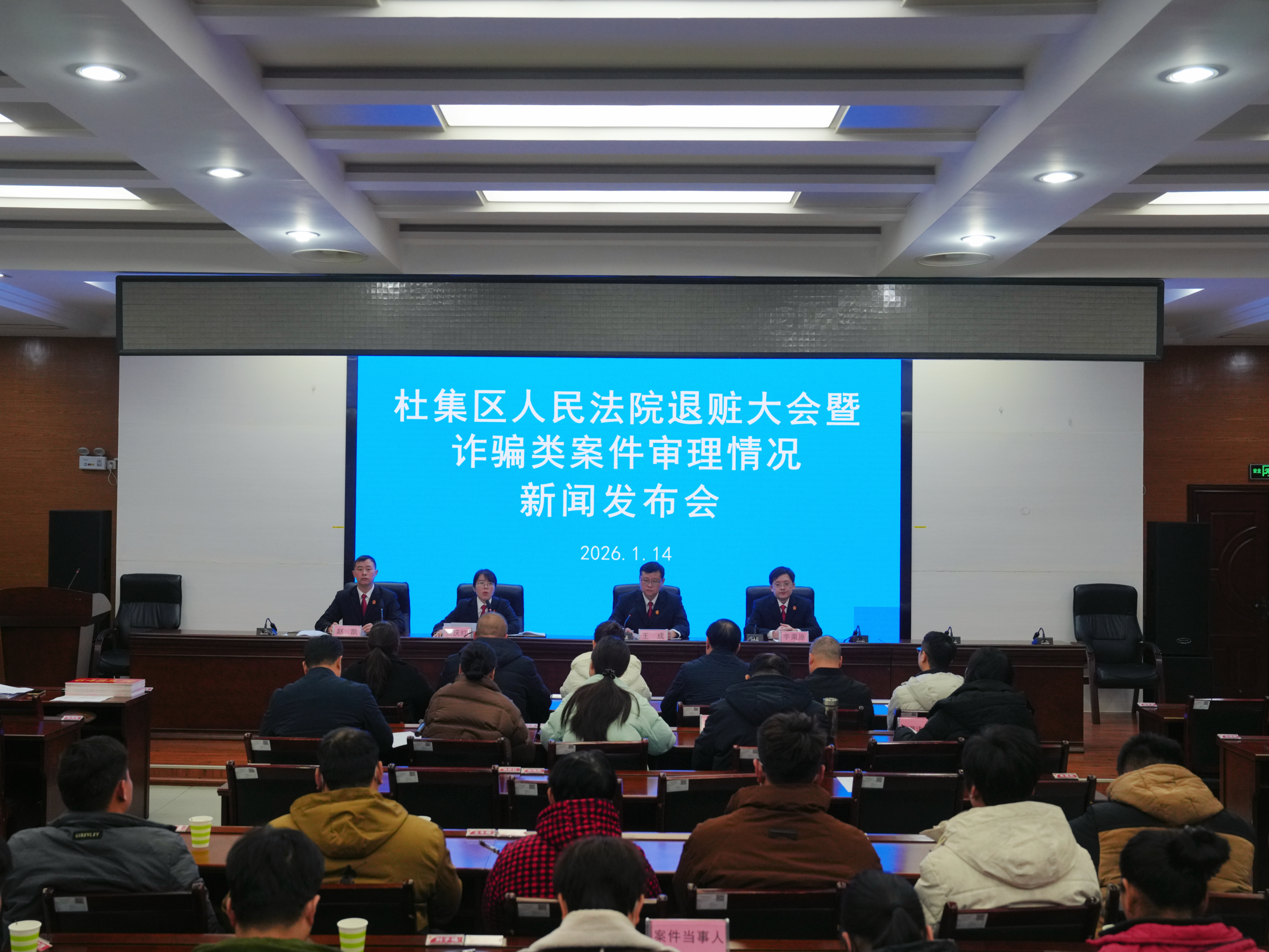 1月14日上午,淮北市杜集区人民法院举行退赃大会暨诈骗类案件审理情况新闻发布会,现场集中向受害群众返还涉案赃款,以司法力量守护群众财产安全。人大代表、政协委员,以及案件被害人代表...