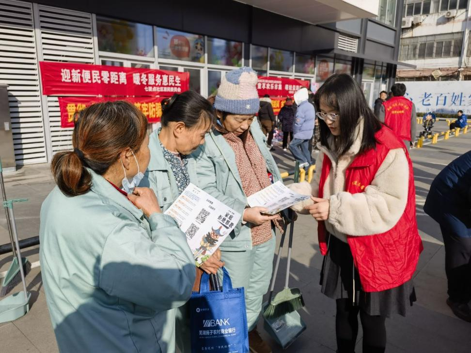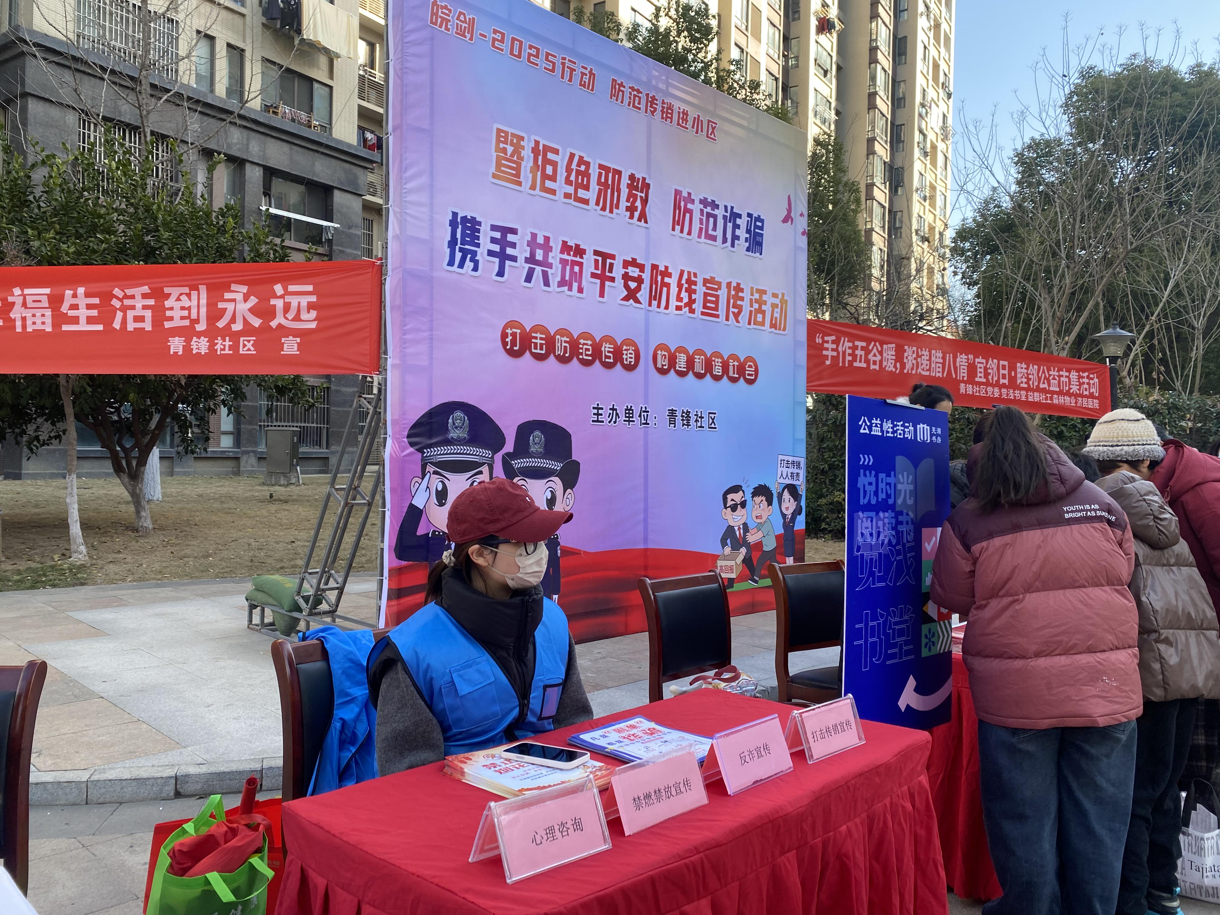 新年伊始,芜湖市镜湖区范罗山街道七更点社区党委联合辖区综治中心、网格员及团委、妇联、关工委、计生协等部门,携手禁毒志愿者在花津桥宜邻中心广场开展反诈、反邪教宣传活动。