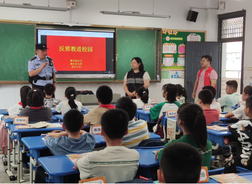 活动中,城东派出所将反邪教宣传教育融入开学第一课和少年儿童安全教育整体活动中。“为保护广大师生免受邪教组织的侵害,我倡议:从自身做起,崇尚科学、反对邪教,对邪教言论不听、不信、不传,敢于与邪教作斗争……”在活动现场,城东派出所民警宣读了反邪教倡议书,并向全体师生介绍了“什么是邪教”“邪教的主要危害”“邪教组织的骗人手段主要有哪些”等,给孩子们上了一堂生动有趣的法治教育课。“遇到邪教骗人时,我们该怎么做?”宣讲民警问道。很快就有学生争先恐后地回答道:“不听、不信、不传!”在宣读人耐心地讲解下,同学们了解到了邪教带给家庭、社会、国家的危害,进一步提高广大师生对邪教的认识,增强师生辨别和抵制邪教的能力,深化了“崇尚科学、反对邪教”的思想理念。学生们纷纷表示,一定会坚决拒绝邪教,做一个“反邪小卫士”。和平小学五年级的陈同学说:“感谢警察叔叔给我们宣传反邪教知识,回家后我也会和爸爸妈妈交流今天学到的知识,让我们一家人都加入反邪教队伍!”