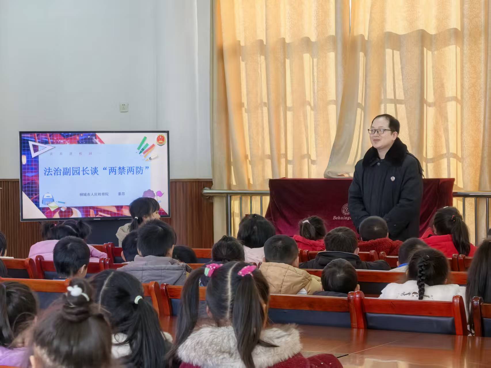 在寒假到来之际,桐城市人民检察院检察干警以桐城市范岗教育集团校范岗中心幼儿园法治副园长的身份为孩子们送去了“法治大礼包”。